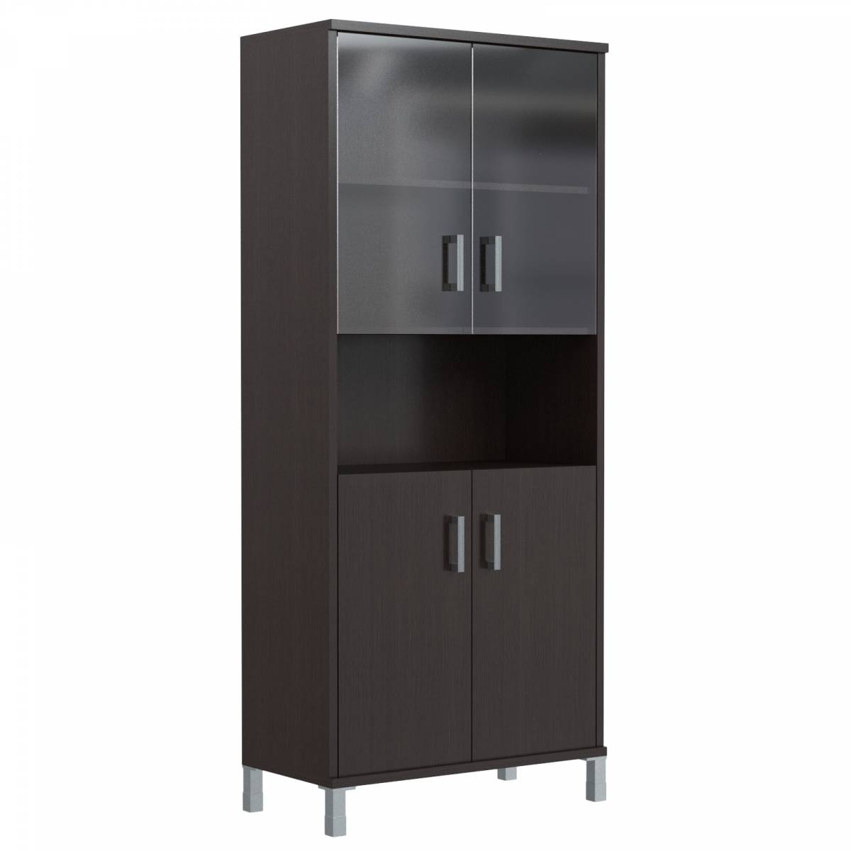 Шкаф высокий с малыми стеклянными дверьми в AL-рамке и глухими B 430.9 Венге Магия 900х450х2054